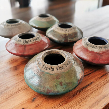 We make ceramic art, using our own original poetry – you can choose from a selection of our work by clicking the button below…